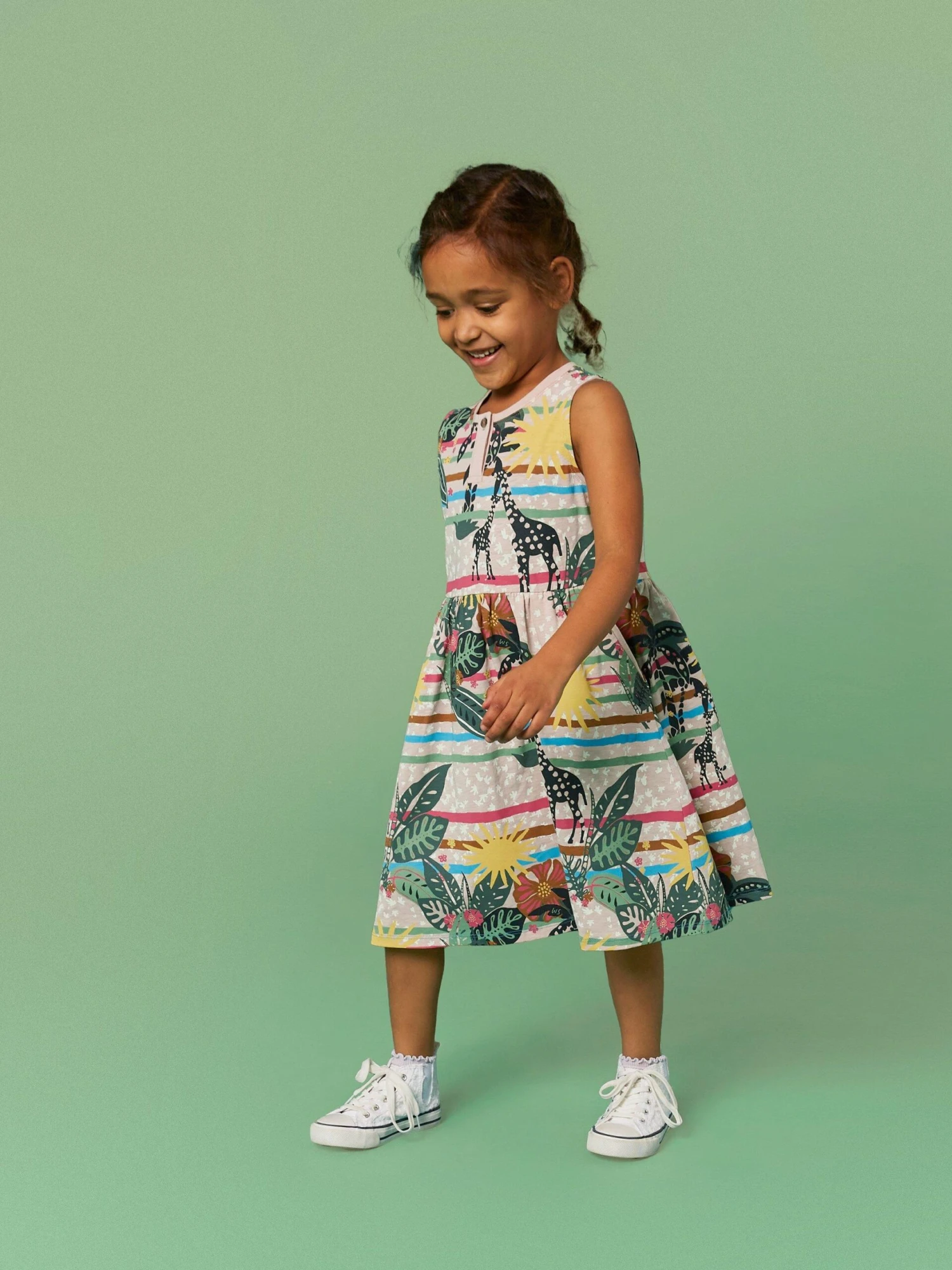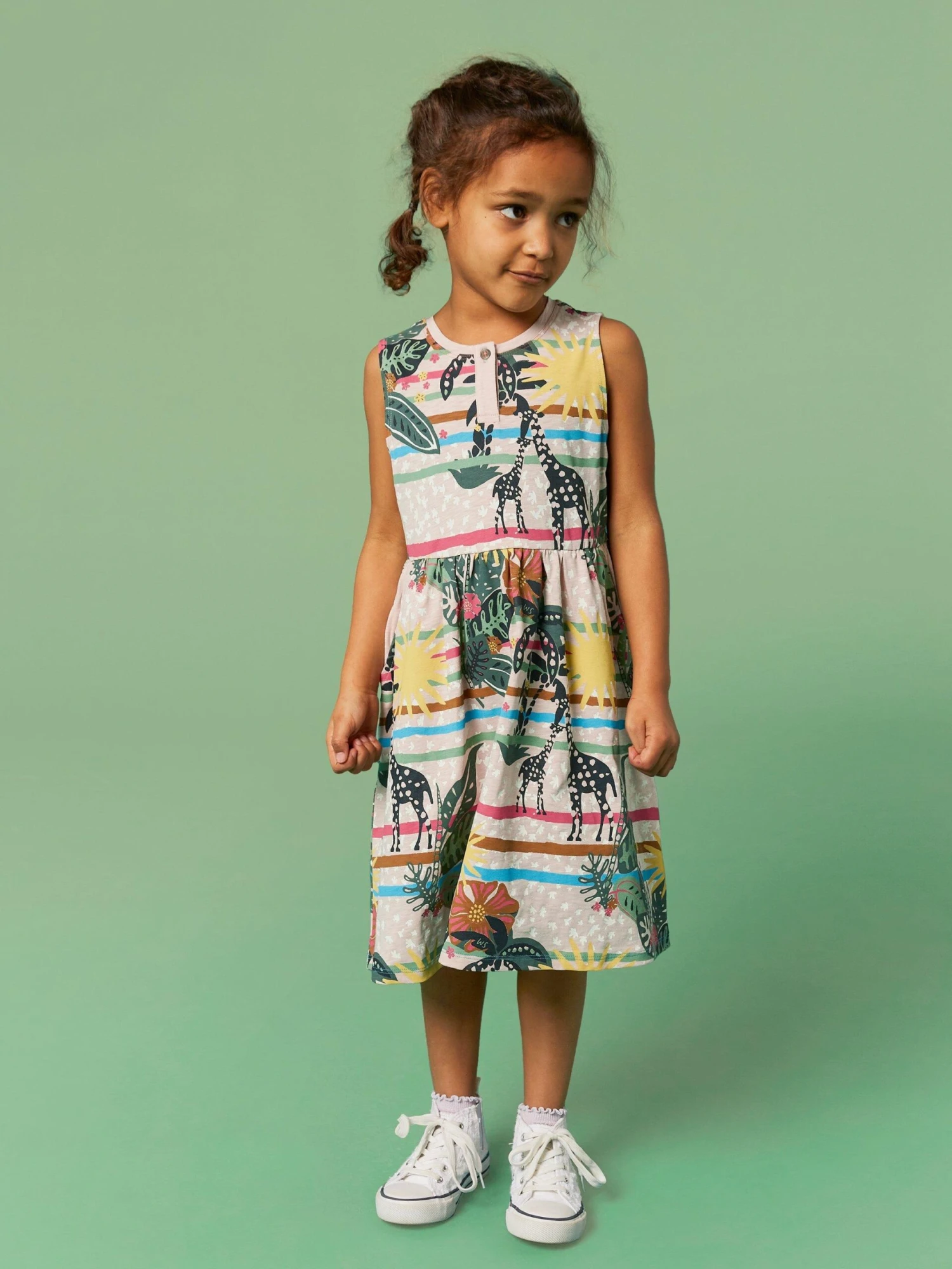 Like grassy knees, homemade ice lollies and slightly burnt noses, stripes are a summer staple. Like the ones on this dress. 100% fairtrade cotton Age 5-6 front apex to hem approx. 45.5cm Crew Neck Sleeveless Knee length Machine Washable