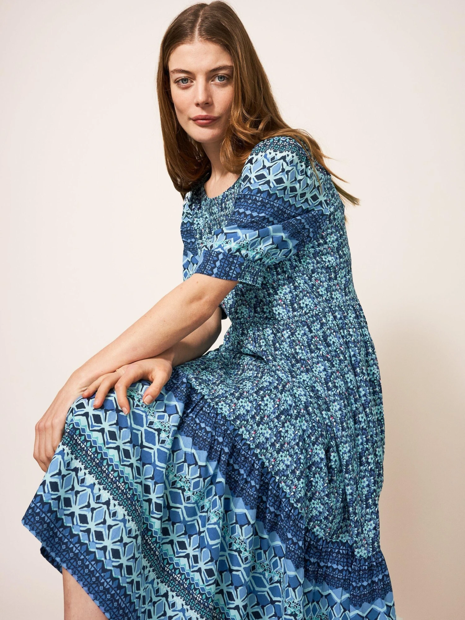 WHITE STUFF Connie Eco Vero Midi Dress In BLUE MULTI