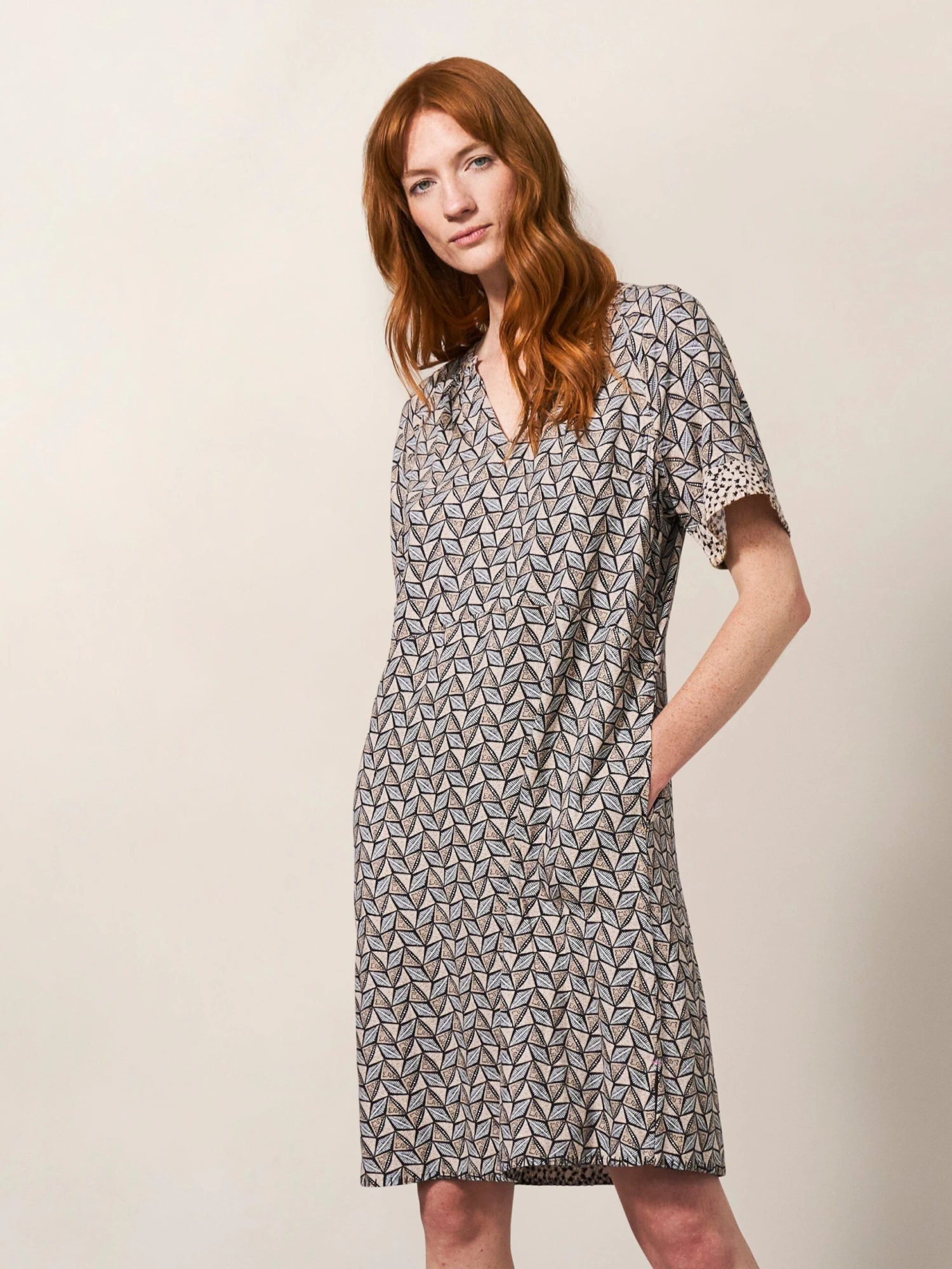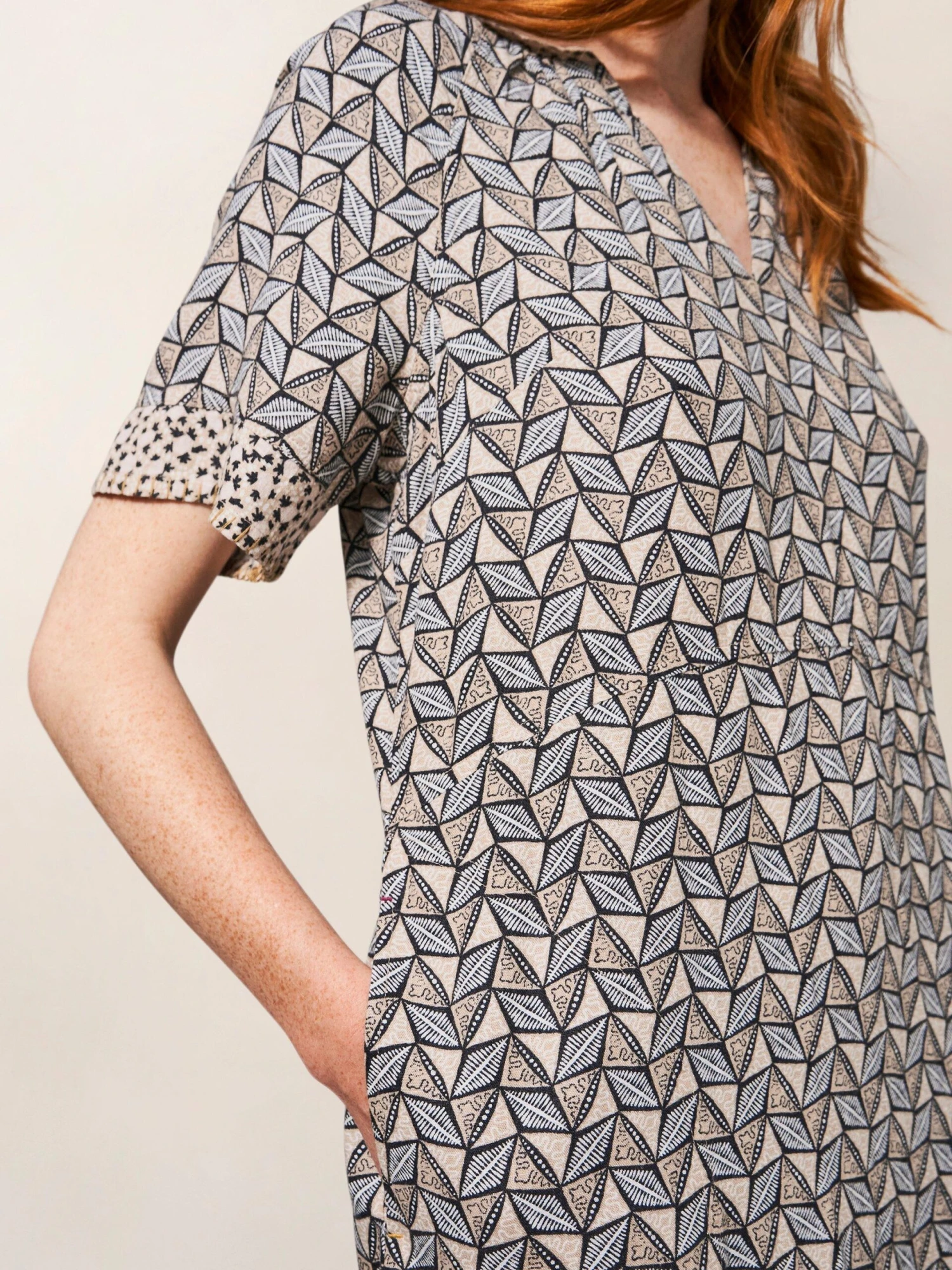 WHITE STUFF Cora Linen Blend Dress In NATURAL MULTI