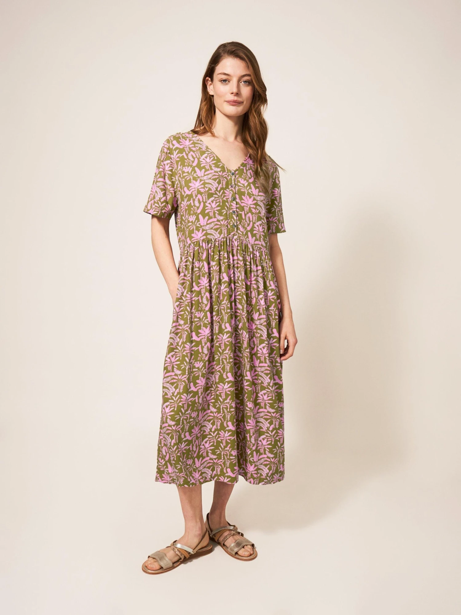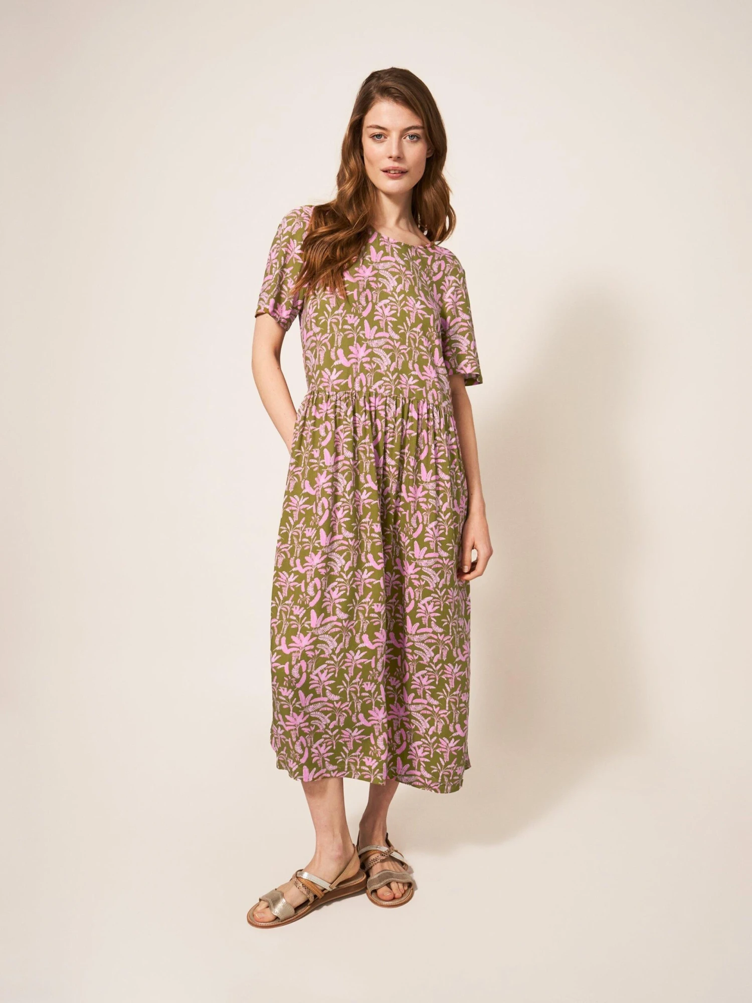 WHITE STUFF Elisa Eco Vero Midi Dress In PINK MULTI