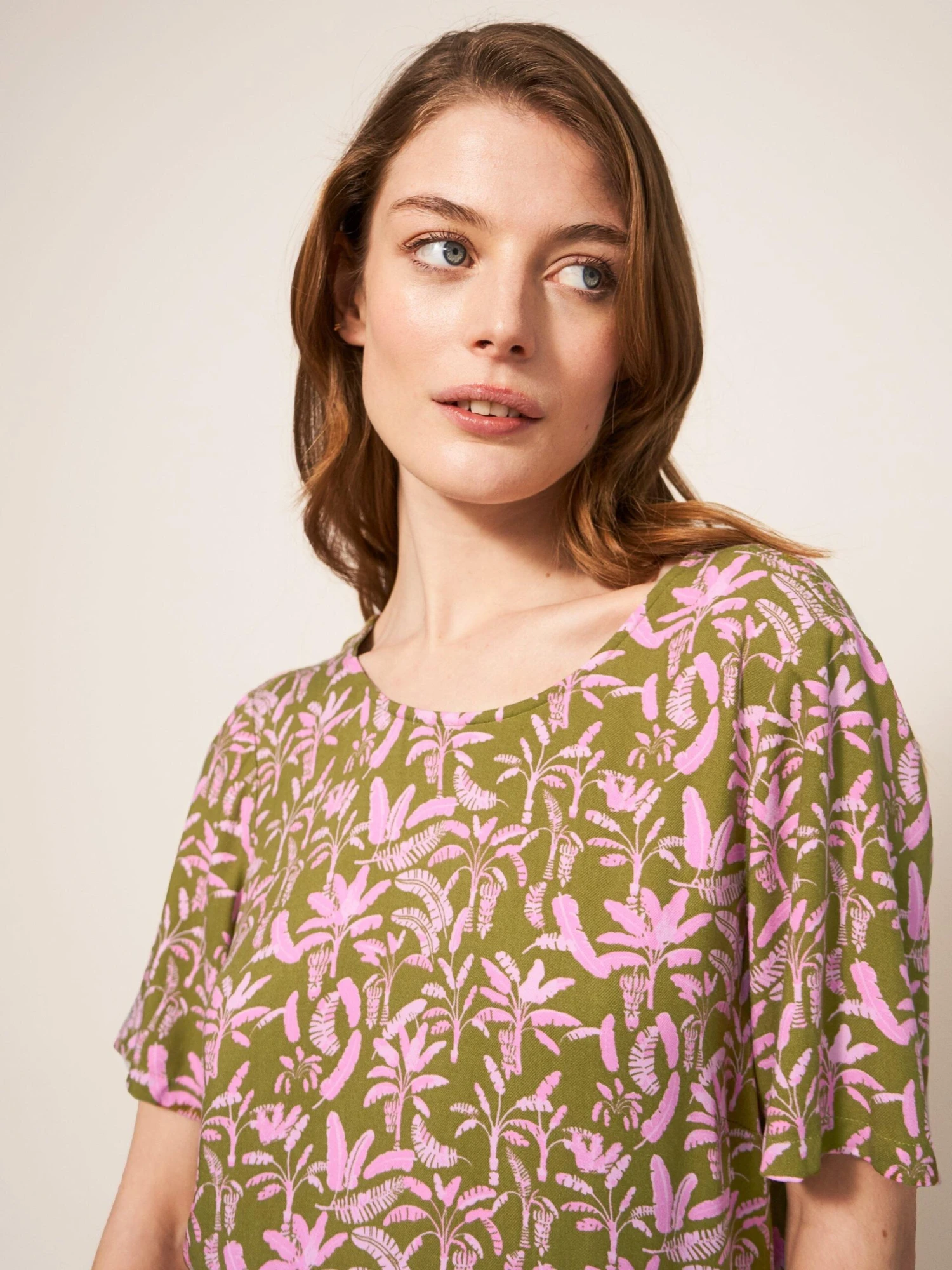 Sunny days call for throwing on swishy patterned dresses (that can be worn with the buttons at the front or back) and getting set up at the park with copius amounts of crisps and dip. 100% lenzing ecovero Size 12 high shoulder neck point to hem approx. 120cm Round Neck Short Sleeve Regular fit Cropped Machine Washable