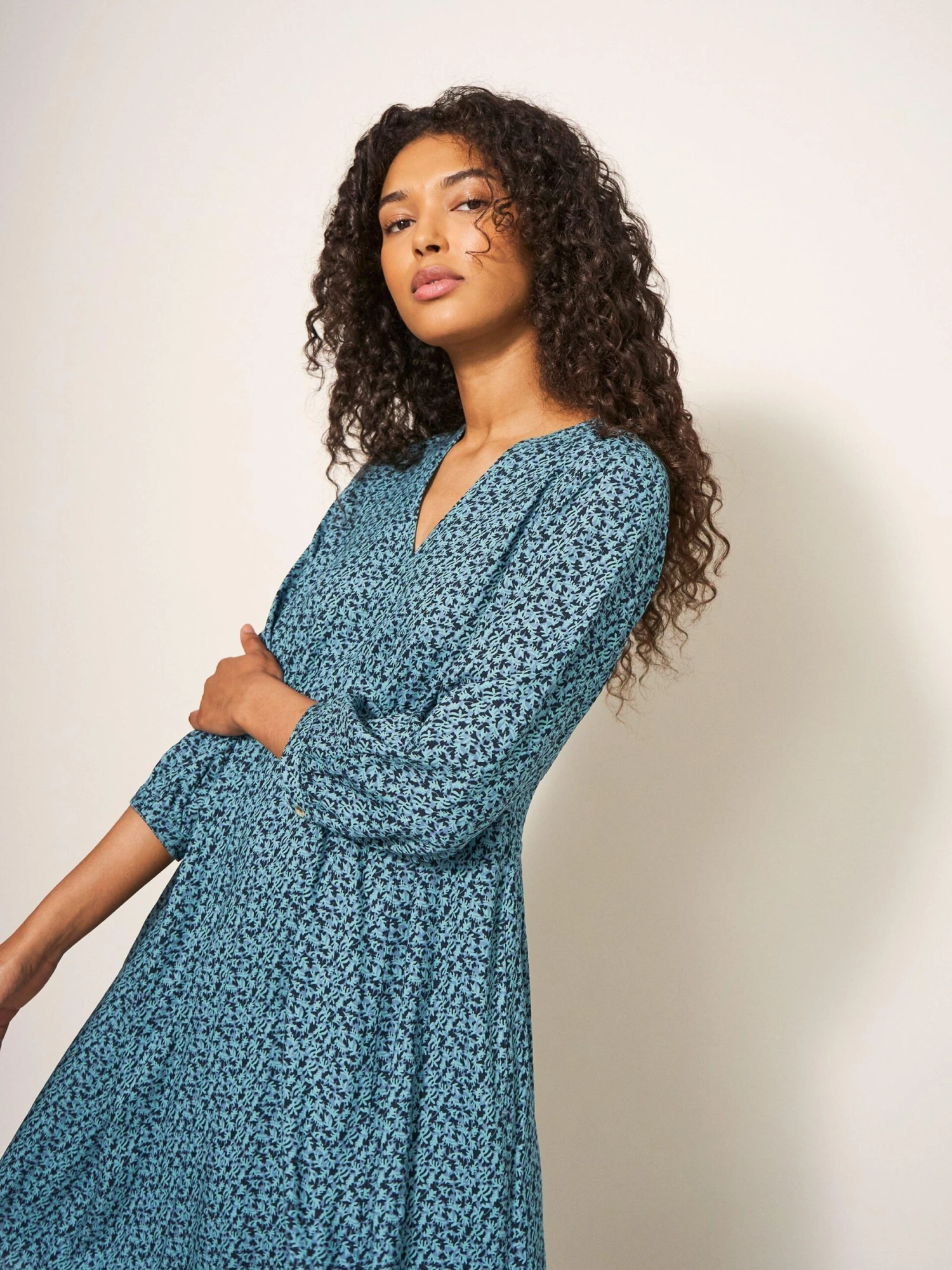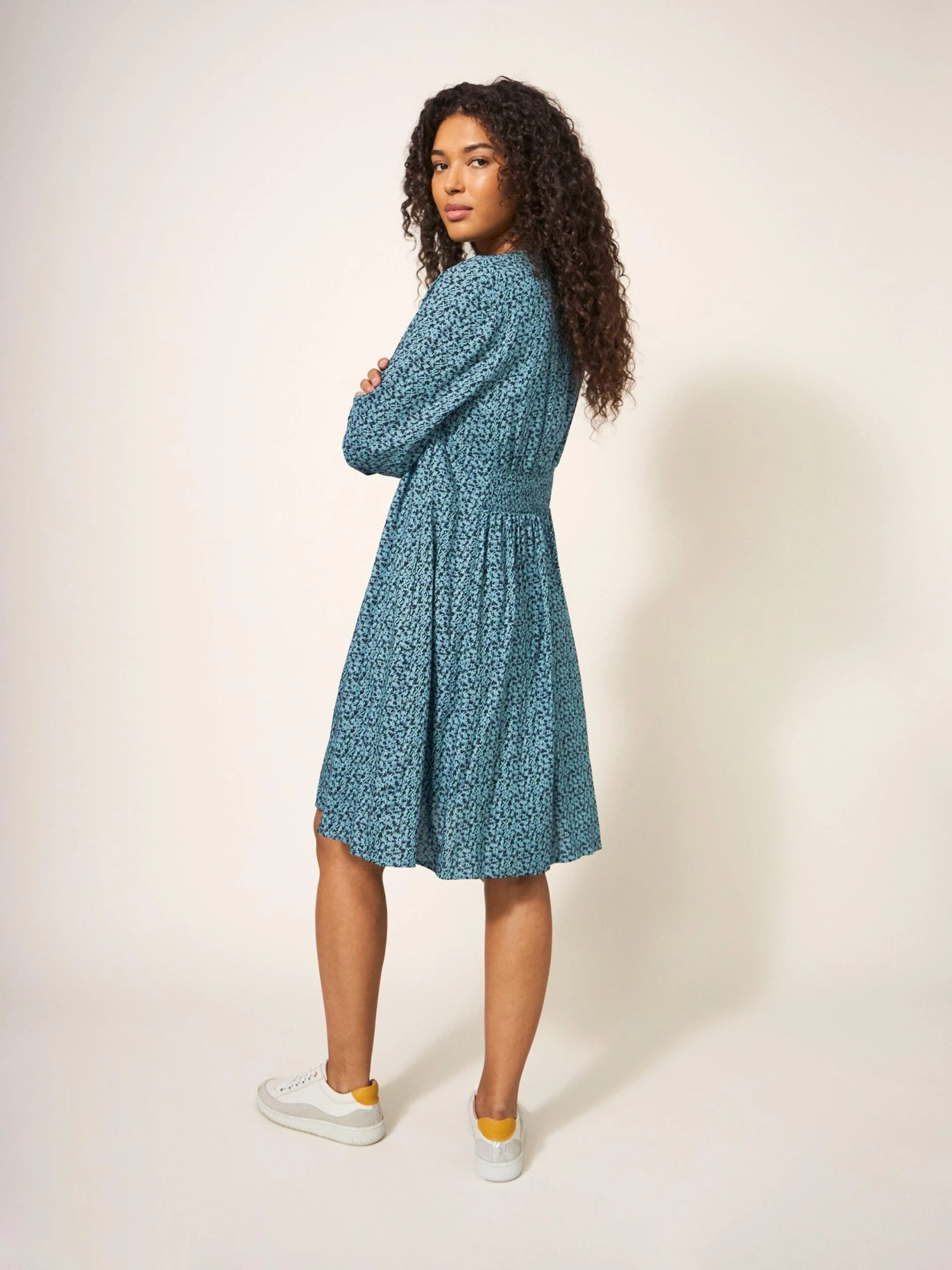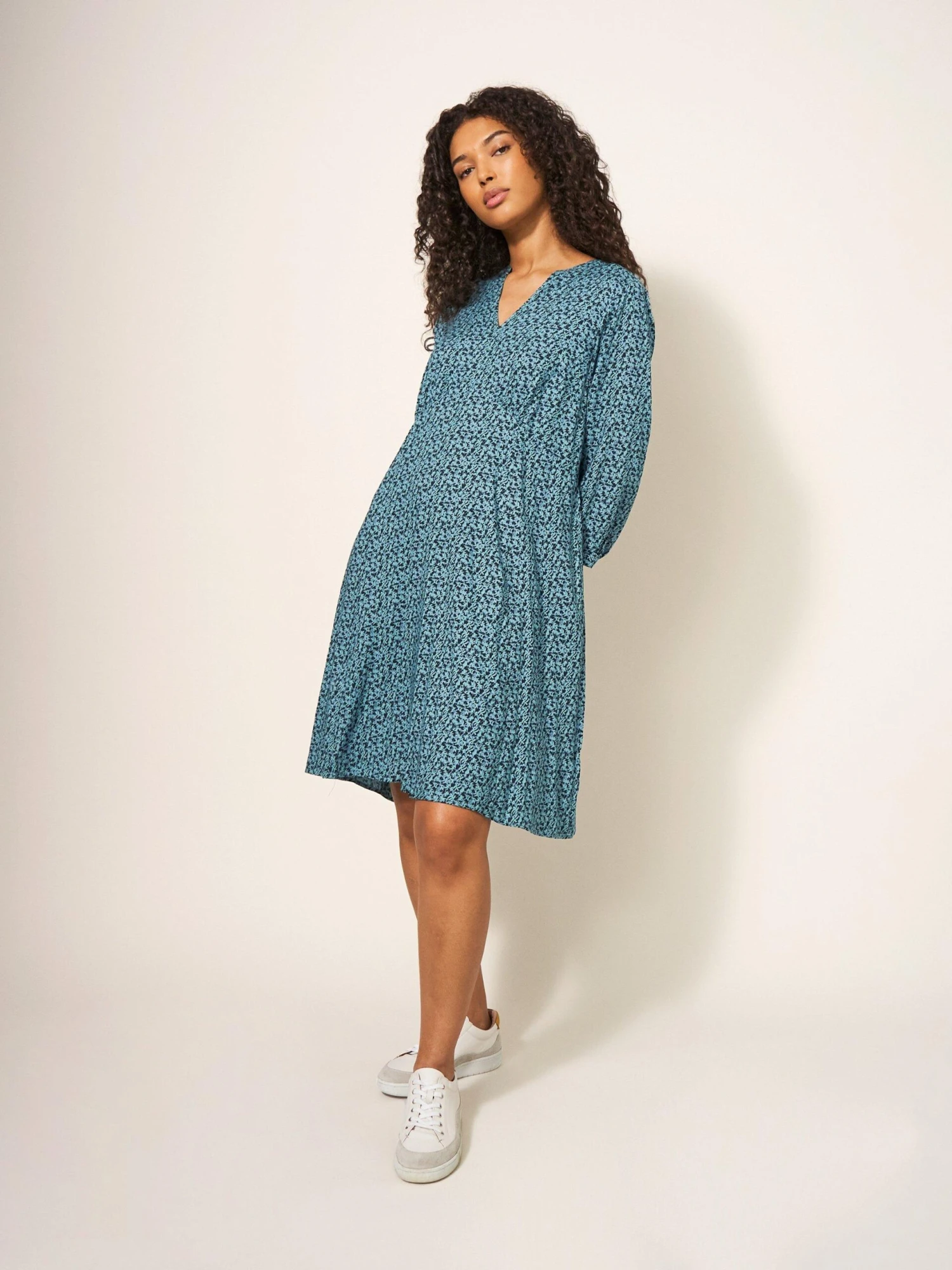 WHITE STUFF Frances Eco Vero Dress In TEAL MULTI