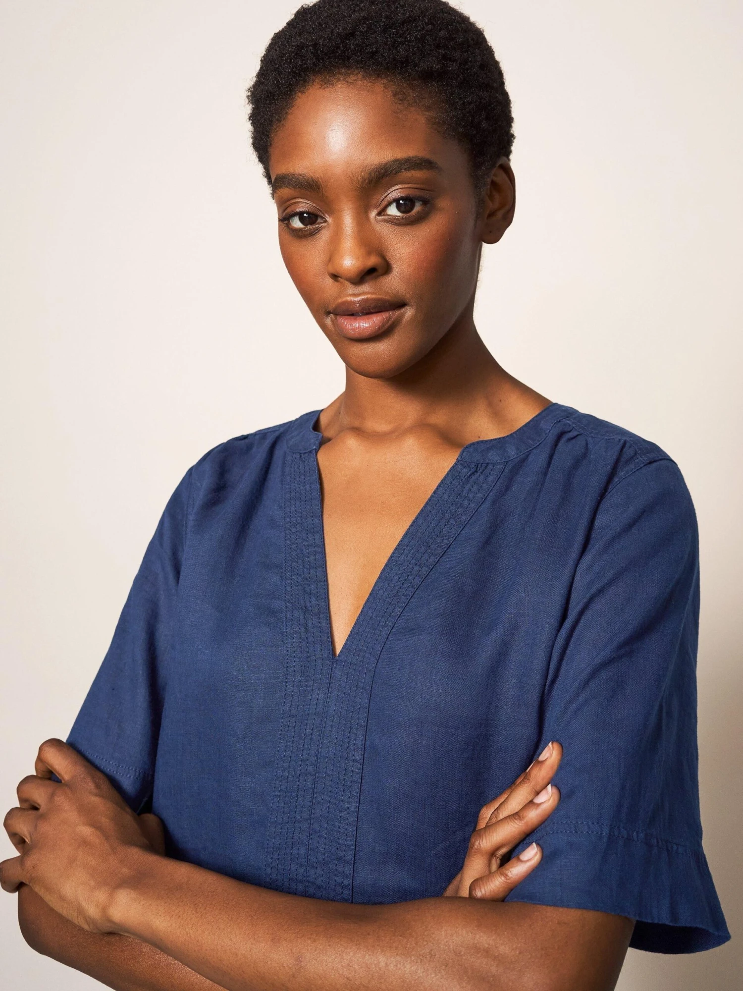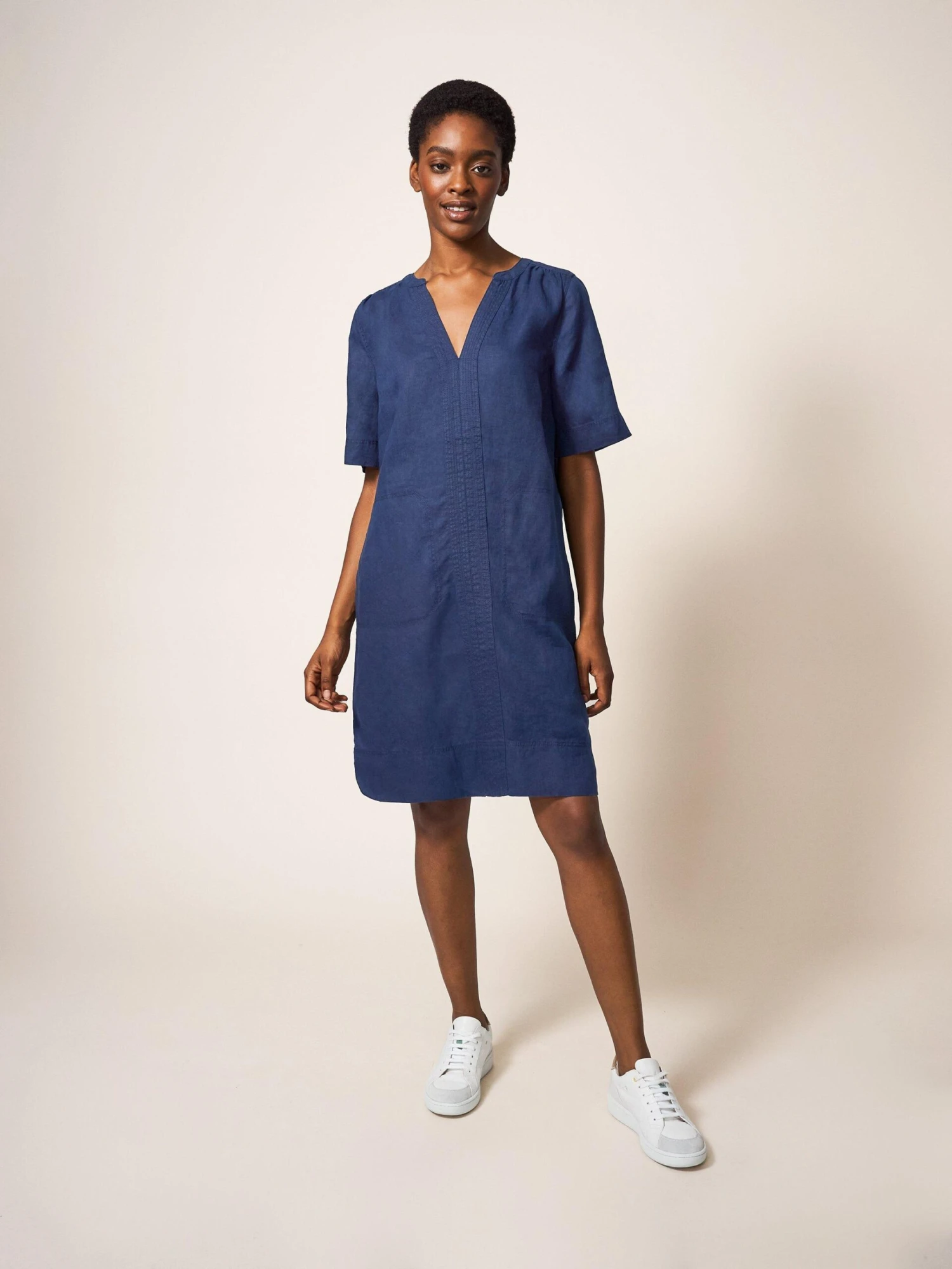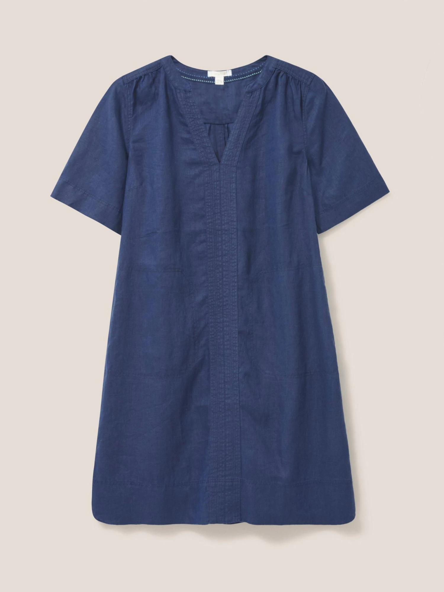 WHITE STUFF June Linen Shift Dress In DARK NAVY
