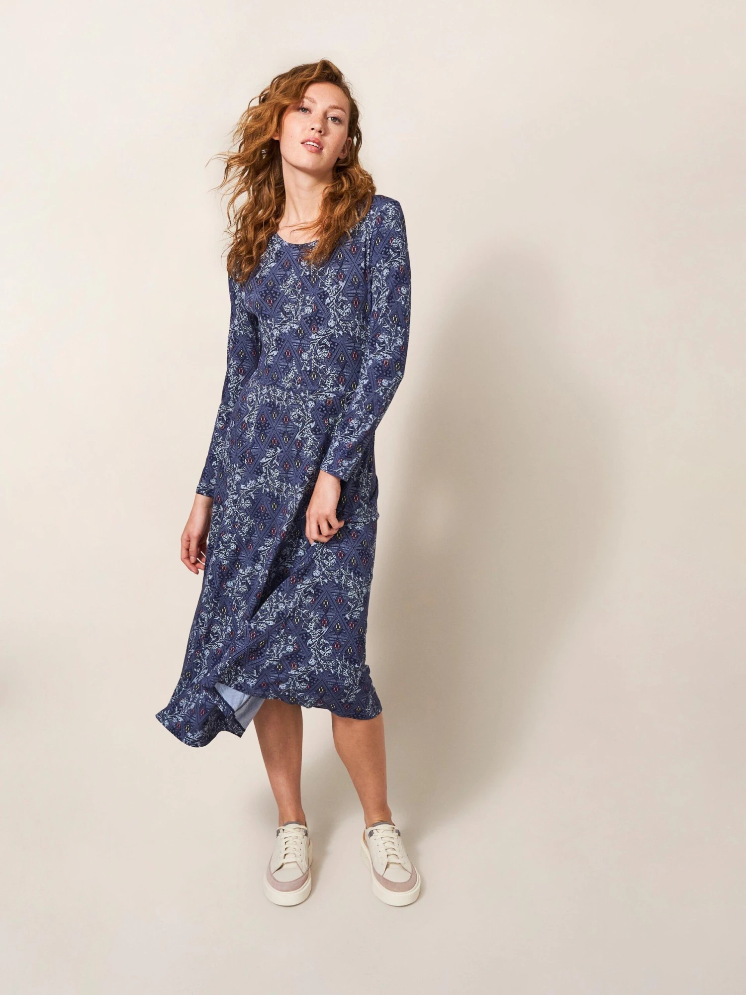 WHITE STUFF Madeline Jersey Dress In BLUE MULTI