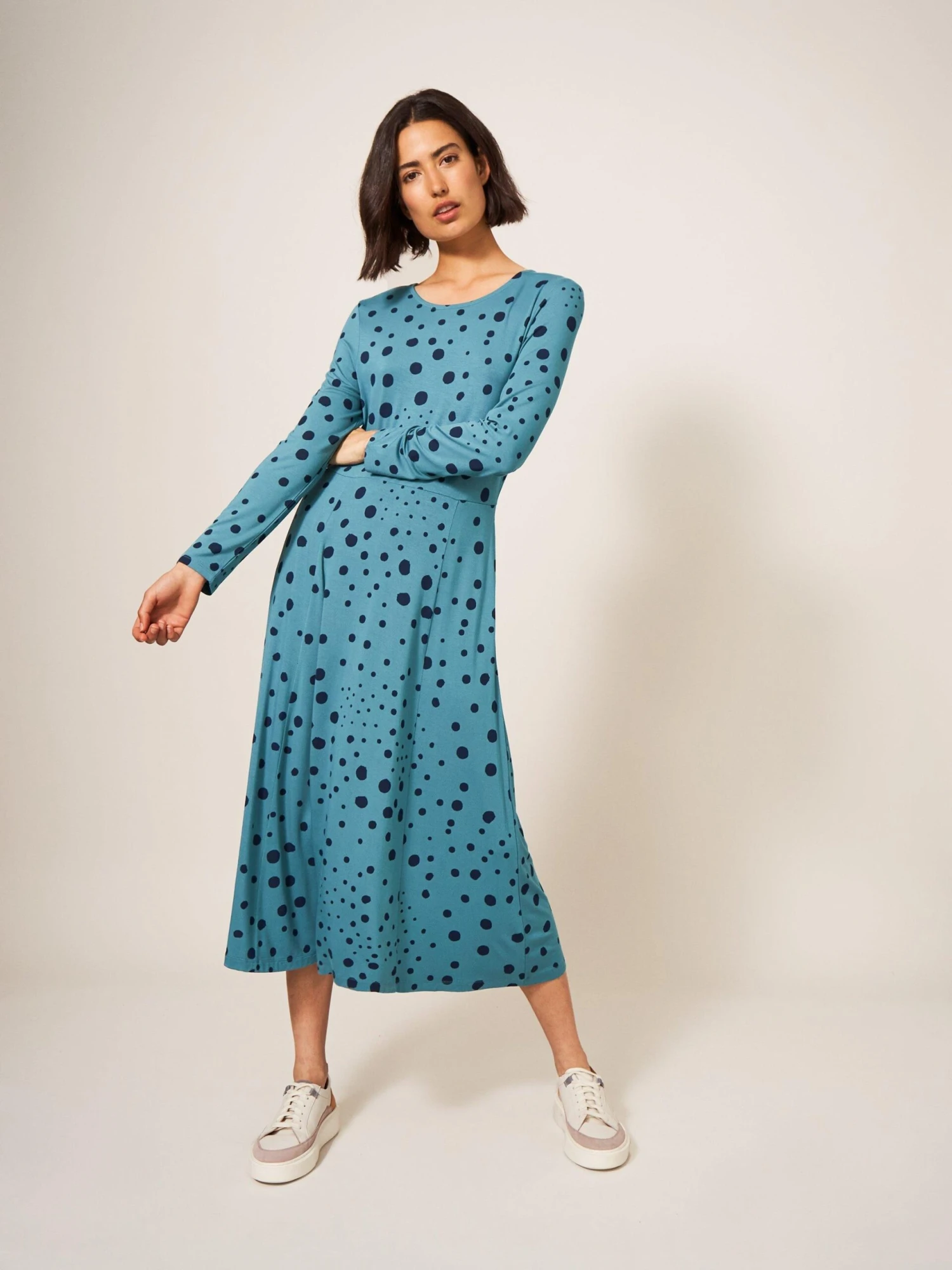 WHITE STUFF Madeline Jersey Dress In TEAL MULTI