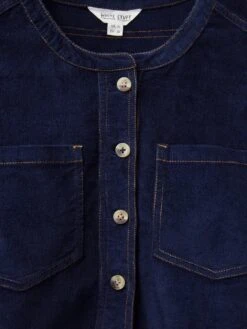 A casual denim jersey dress with front-button fastening. The good kind of dressing down. 100% Cotton Size 12 high shoulder neck point to hem approx. 105 cm Round Neck 3u002F4 Sleeve Classic Fit Knee length Machine Washable