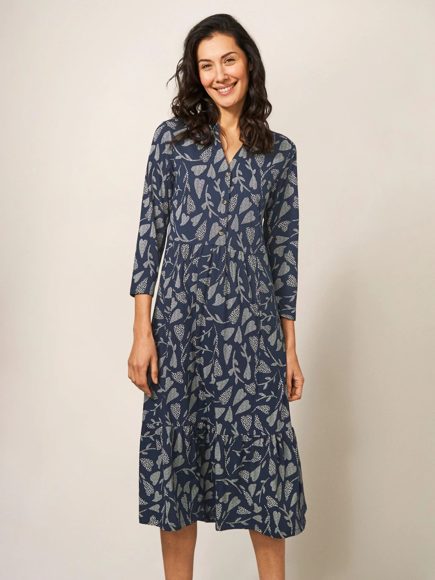 WHITE STUFF Naya Jersey Midi Dress In NAVY MULTI