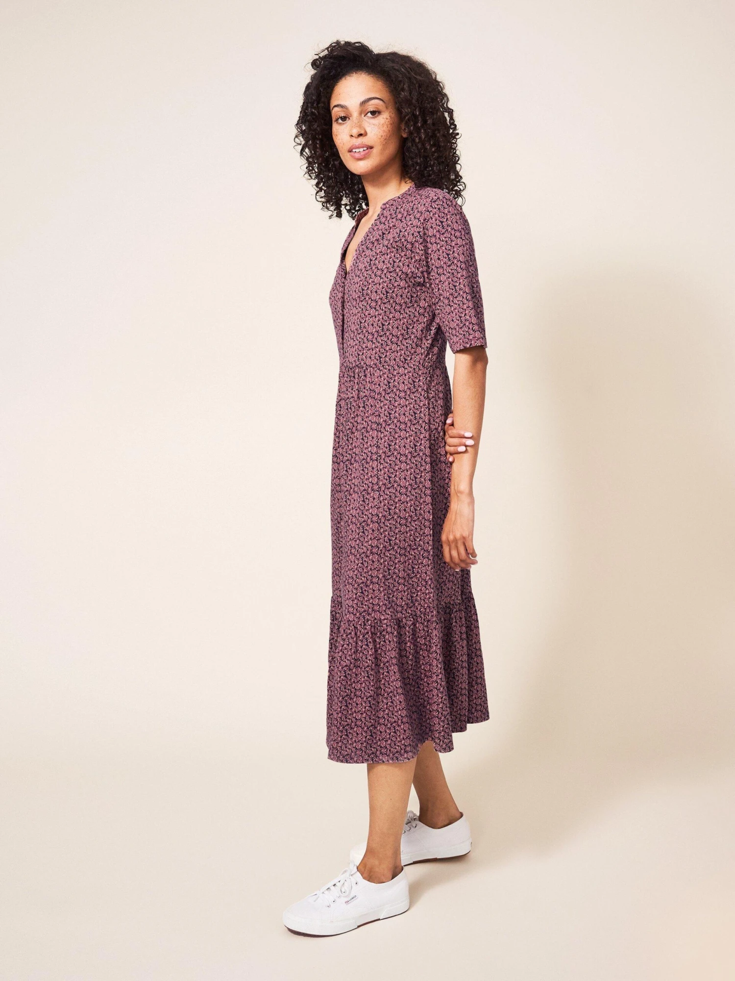 WHITE STUFF Naya Organic Cotton Blend Jersey Dress In PINK MULTI