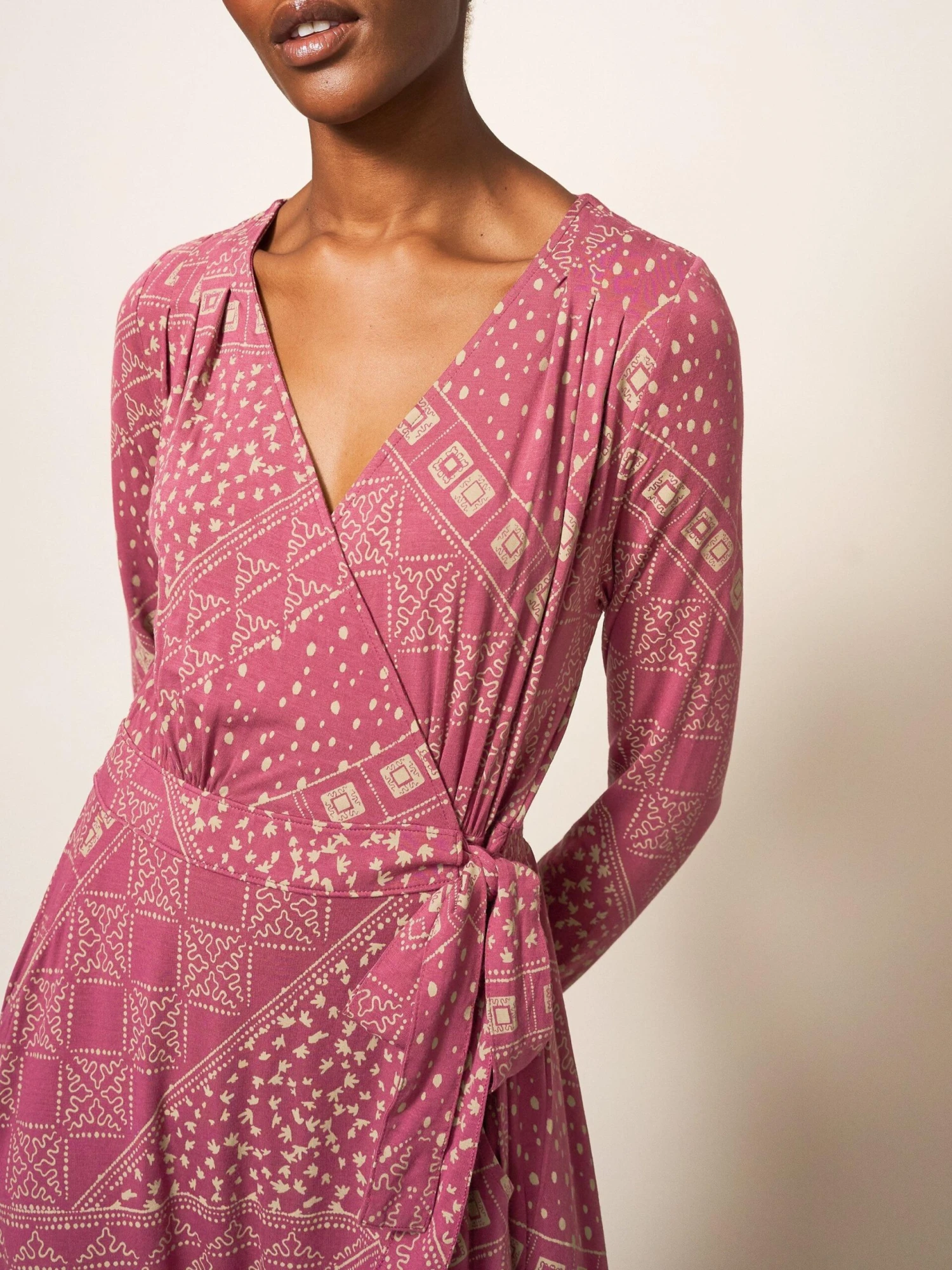 WHITE STUFF Rose Eco Vero Wrap Dress In PLUM MULTI