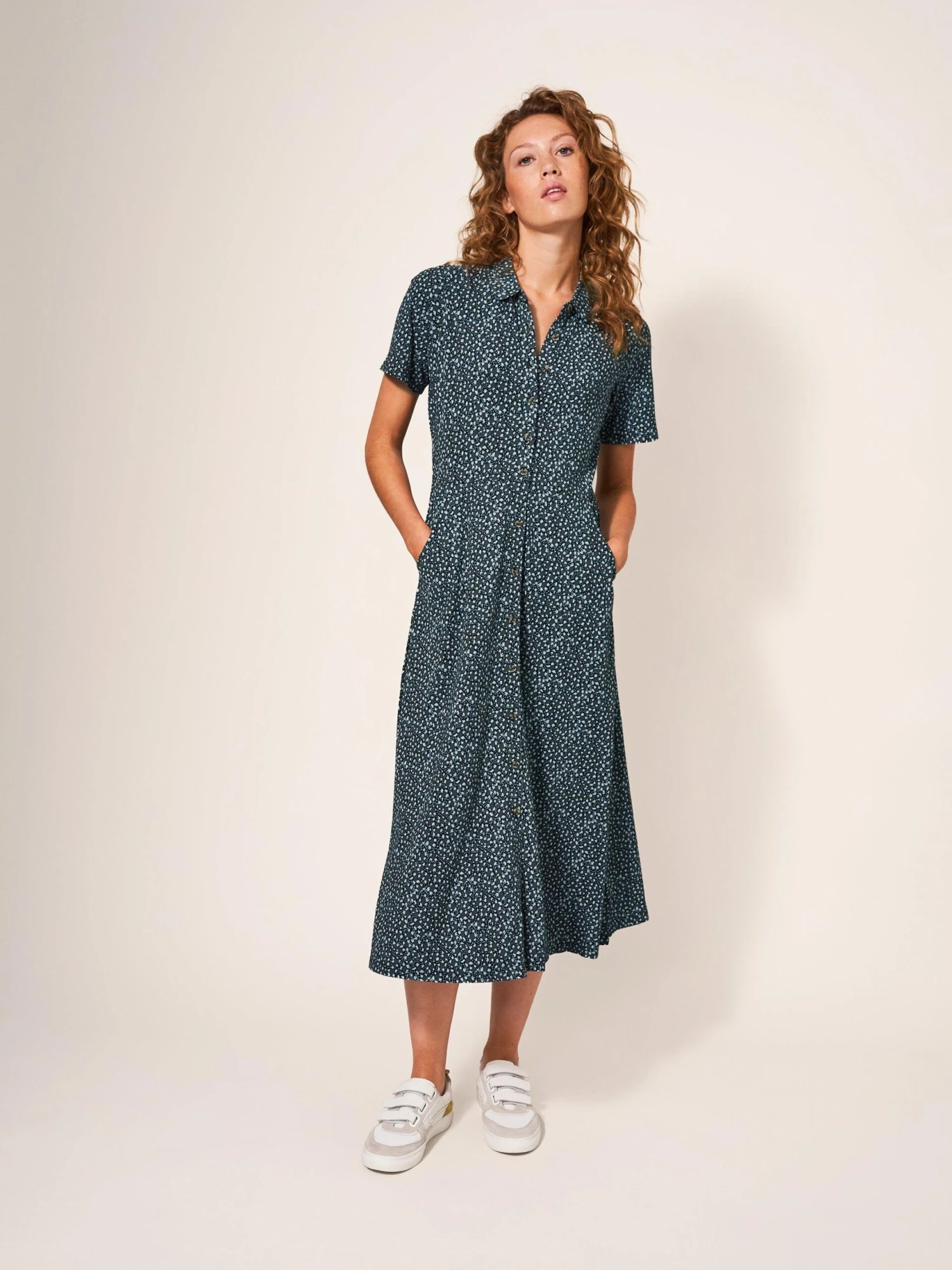 WHITE STUFF Rua Jersey Shirt Dress In TEAL MULTI