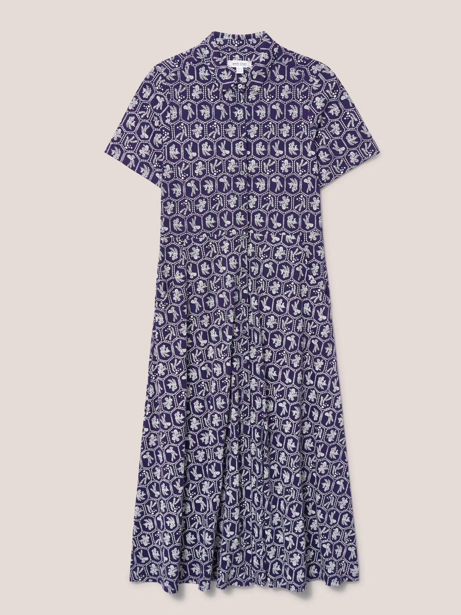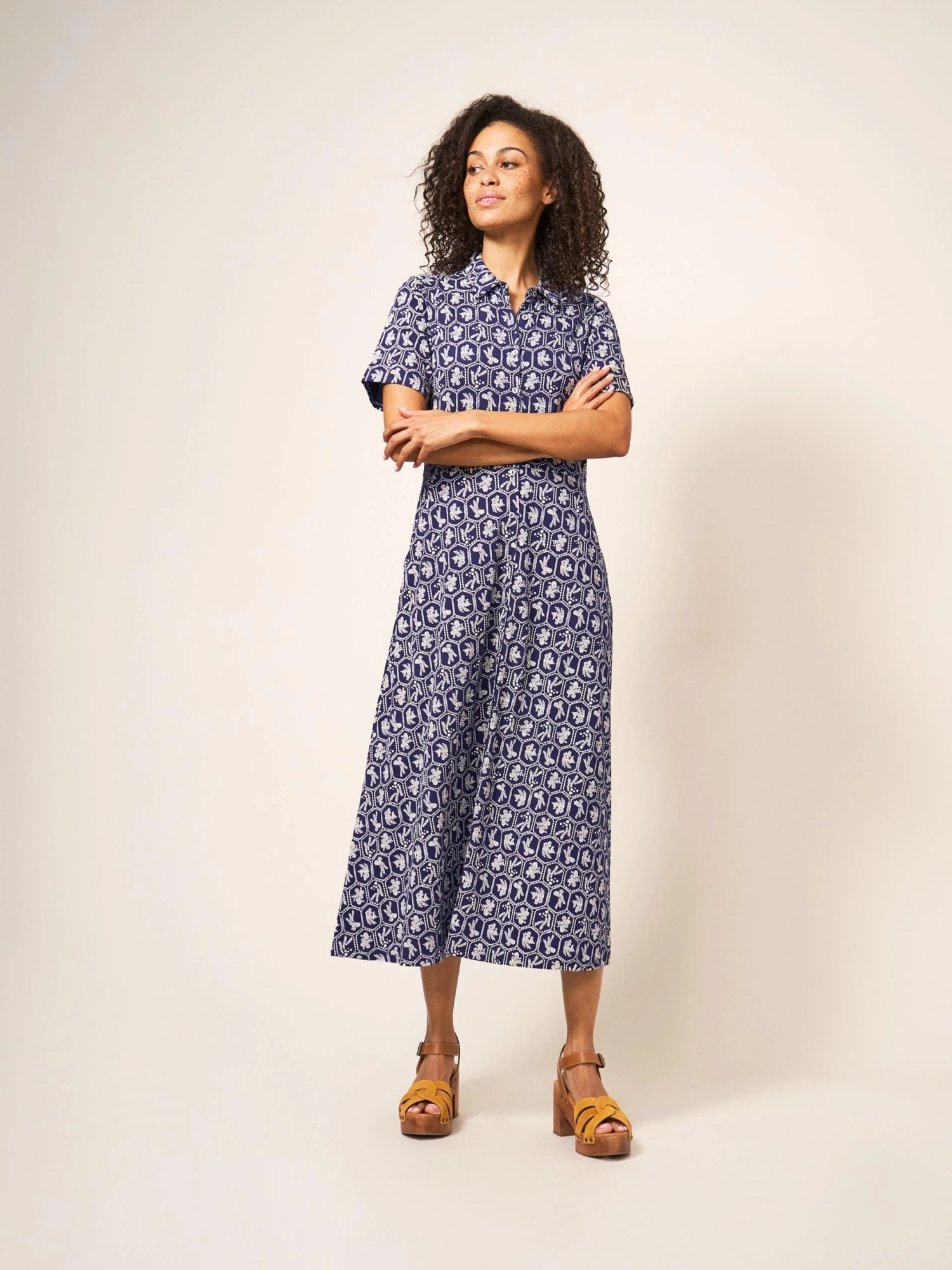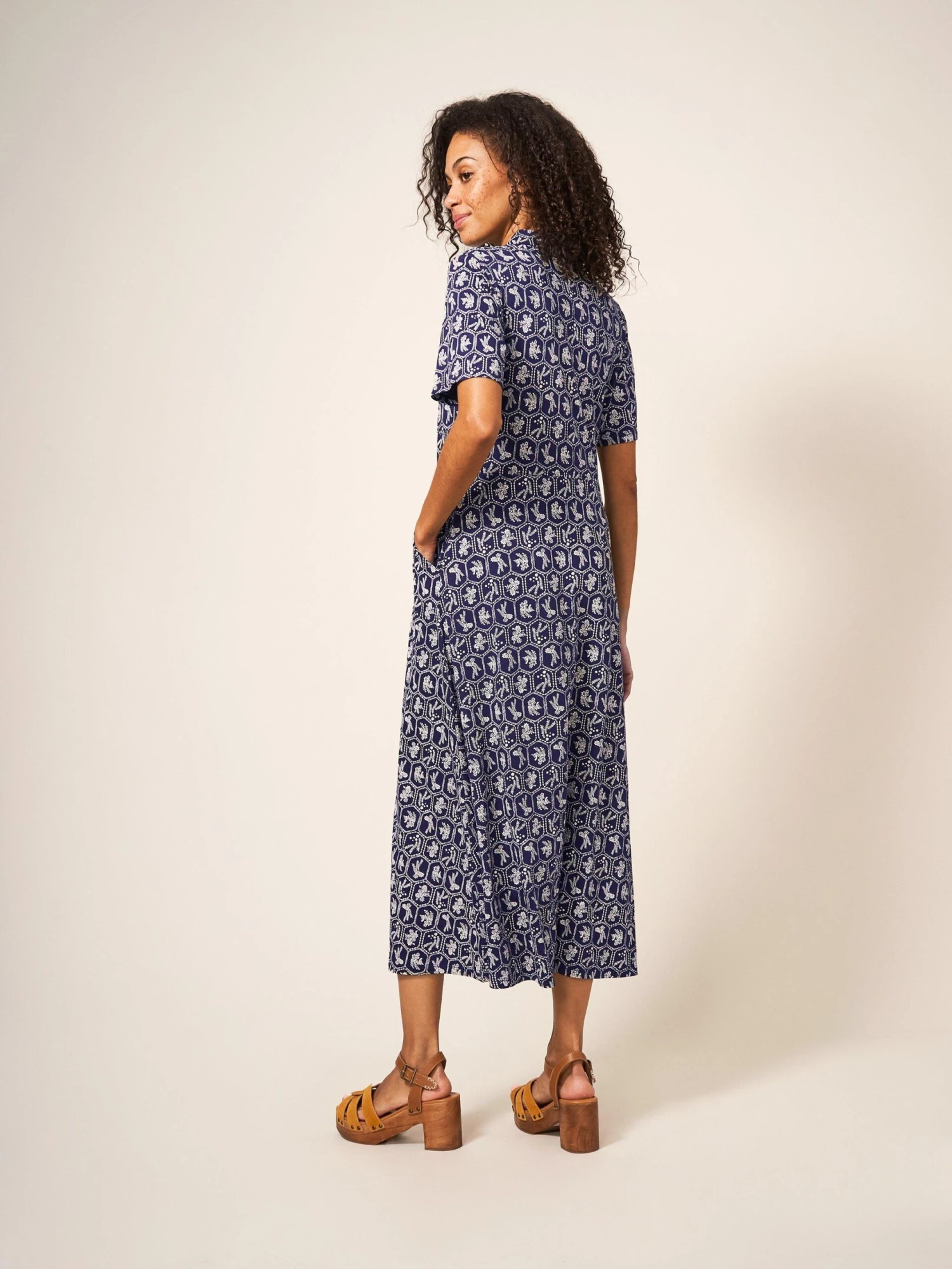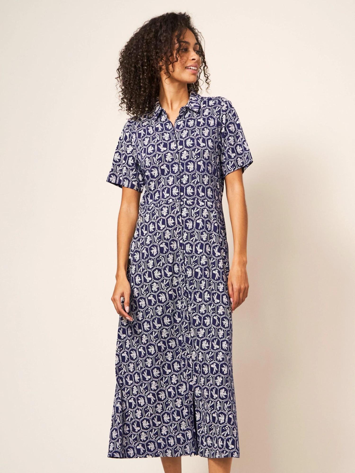 WHITE STUFF Rua Jersey Short Sleeve Shirt Dress In NAVY MULTI