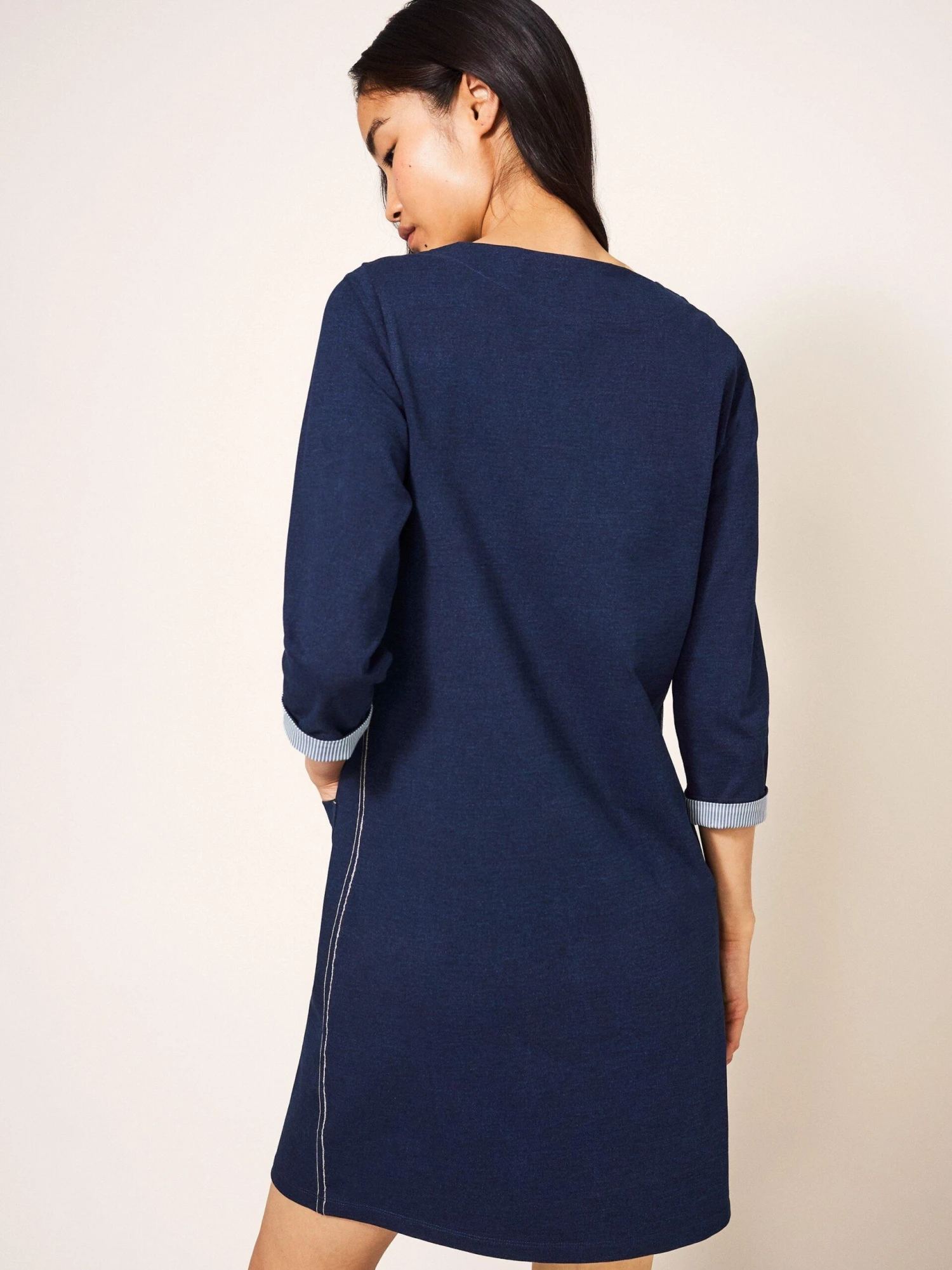 WHITE STUFF Skye Cotton Denim Jersey Dress In DK DENIM